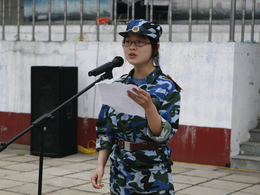 人文社会科学学院姚璐同学代表全体军训学员发言。她说,军训为大学生提供了一个强健体魄、培养吃苦耐劳精神和提升思想境界的绝好机会,可以通过军训培养集体意识和爱国意识并提升自己的军事技能,力争通过军训成长为文武双全的现代大学生。