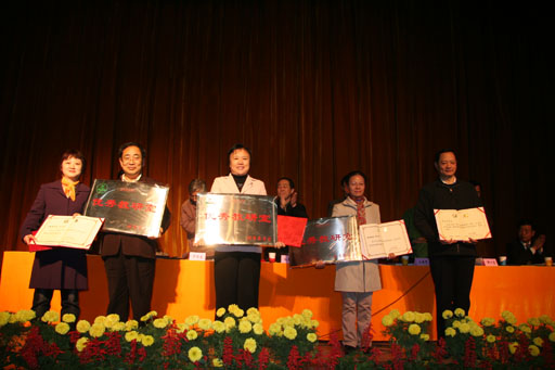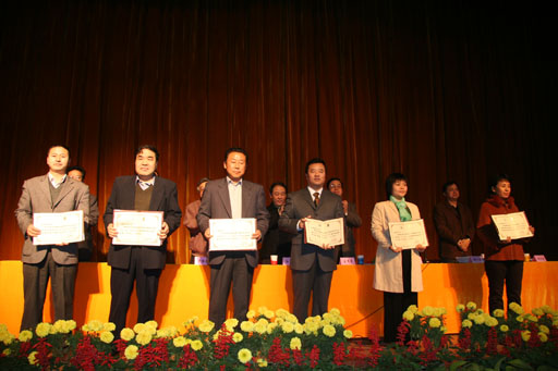 副院长郑一淳宣读了表彰决定。校领导为荣获优秀教研室称号的教研室、2004年北京高等教育精品教材主编、2004年北京市教育教学成果一等奖、二等奖和beat365官网高等教育教学成果奖一等奖的获得者、多媒体课件比赛一等奖的获得者颁奖。(获奖名单附后)
