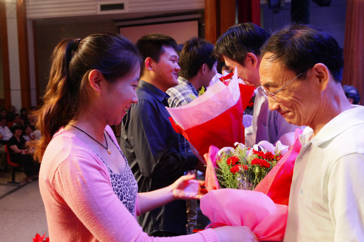 在即将离开母校之际,毕业生代表向教师代表敬献了鲜花,以表达对老师们谆谆教诲的感激之情。