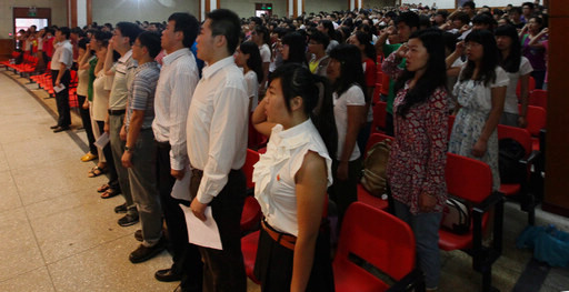 日前,beat365官网党委学生工作部组织学生党员、预备党员和入党积极分子600余人,在礼堂举行了“新党员入党宣誓,老党员重温誓词”仪式。校党委副书记高东、党委组织部部长赵和文、学生工作部部长韩宝平、团委书记李相阳出席仪式,部分学院副书记、辅导员老师参加了宣誓仪式。仪式由学生工作部部长韩宝平主持。