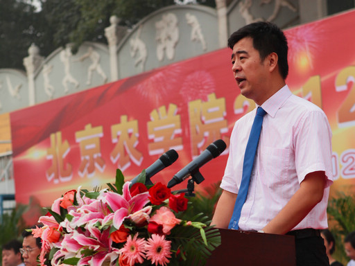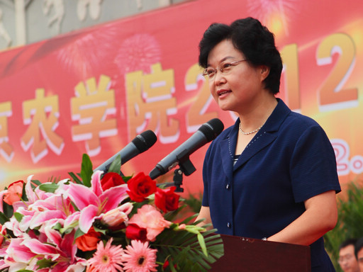 王慧敏在开学典礼上发表热情洋溢的讲话,欢迎来自全国20个省区市的1887名新同学加入“北农”这个温馨的大家庭。