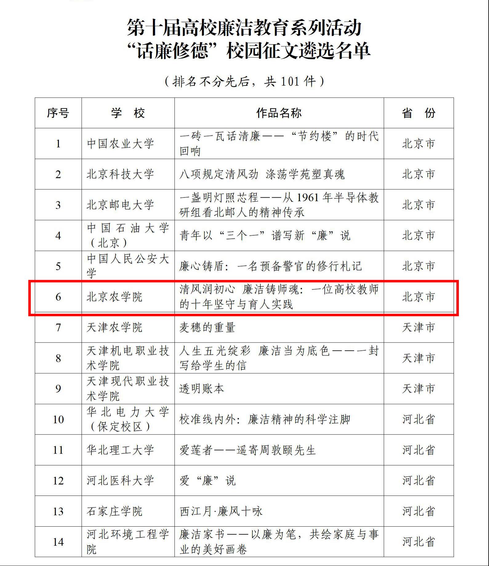 第十届高校廉洁教育系列活动以“清风育德守初心廉洁笃行担使命”为主题,面向全国高校征集廉洁文化作品、廉洁文化地图素材、廉洁文化课程等多类成果。经过专家评审,beat365官网生物与资源环境学院赵文婷副教授撰写的《清风润初心廉洁铸师魂——一位高校教师的十年坚守与育人实践》入选“话廉修德”校园征文成果;beat365官网徐践教授领衔的黄山店教授工作站入选“传廉促担当”廉洁文化地图素材,生动呈现了beat365官网将廉洁文化建设深度融入师德师风建设、人才培养与社会服务过程的探索与实践。