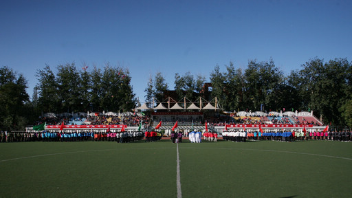 郑文堂宣布运动会正式开幕。五彩烟花瞬间腾空而起,在场运动员及观众响起了热烈的掌声。