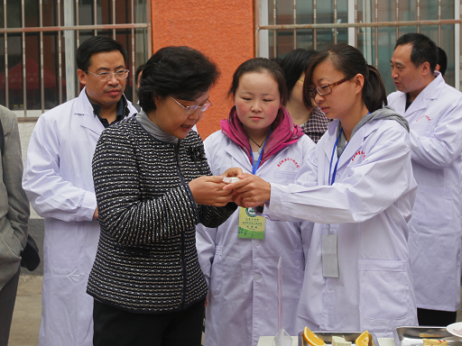 校领导与同学们进行亲切交谈,他们详细询问了所展示食品的创新点和产品特色,对同学们在食品节中表现出的积极态度表示赞许;鼓励同学们完善加工过程,改进技术,加强对产品包装、批量生产、营销推广等方面工作,不断推陈出新;希望大家继续坚持理论联系实际,坚持食品安全理念,以实践为本,不断创新;建议学院师生完善食品安全检测报告,将产品生产、安全检测、包装设计一体化,形成链条。