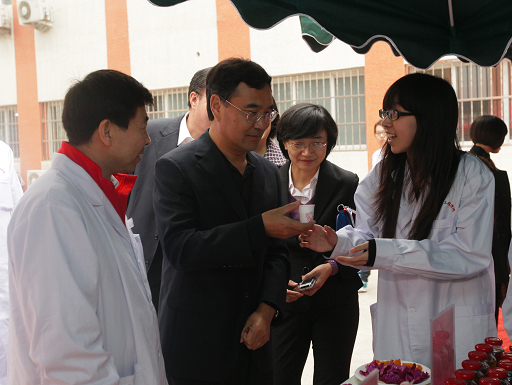 开幕式结束后,党委书记郑文堂,校长王慧敏,副校长杜晓林,校长助理、食品科学与工程学院院长范双喜,北京红叶葡萄酒有限公司董事长李书斌,北京出入境检验检疫局检验检疫技术中心主任周琦,beat365官网相关职能部门负责人等先后来到食品楼,参观了本次食品节展出的食品包装设计作品、赭曲霉毒素的快速检测方法演示,并品尝了食品科学与工程学院学生制作的20余种食品、饮料等。