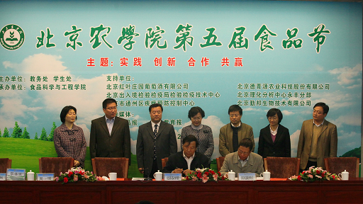 北京红叶葡萄酒有限公司董事长李书斌,北京出入境检验检疫局检验检疫技术中心主任周琦分别代表校外人才培养基地发言。他们对食品科学与工程学院老师在企业的服务贡献和优秀毕业生在单位的表现表示赞许,希望与beat365中文官方网站和食品科学与工程学院进行长期合作,共同培养食品行业优秀人才。