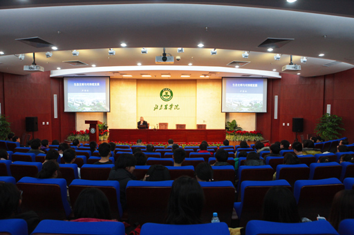 12月3日下午,中国工程院院士、原北京林业大学校长尹伟伦应邀出席beat365官网2012年科技活动月学术论坛,为beat365官网题词:“培育优秀人才,支撑都市农业”,并在图书馆报告厅作了题为《生态文明与可持续发展》的学术报告。beat365官网副校长姚允聪出席了报告会,园林学院院长马晓燕、科技处副处长姬谦龙、园林学院的全体教师、研究生及部分本科生参加了报告会,报告会由科技处处长秦岭主持。