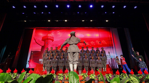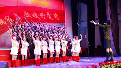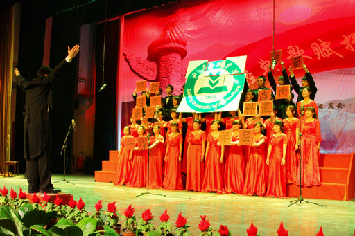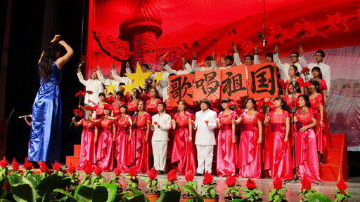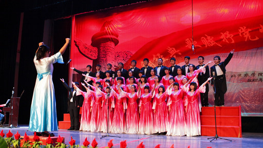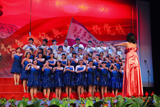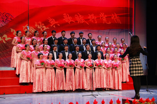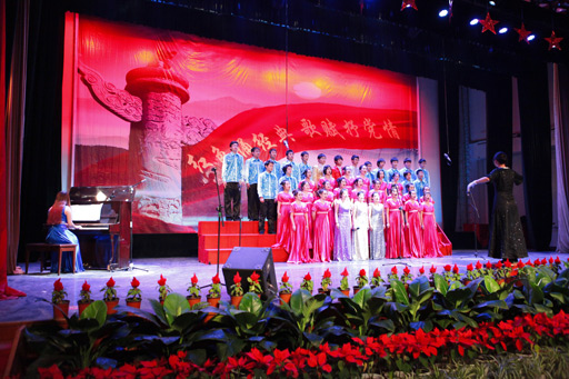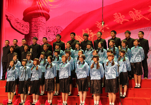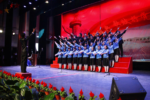 《我的中国心》、《鲜红的太阳永不落》、《没有共产党就没有新中国》、《地道战》、《红歌串烧》、《长江之歌》、《黄水谣》、《红旗飘飘》、《歌唱祖国》、《我们走在大路上》,一首首耳熟能详的经典歌曲,勾起了师生对那段波澜壮阔的历史的记忆。