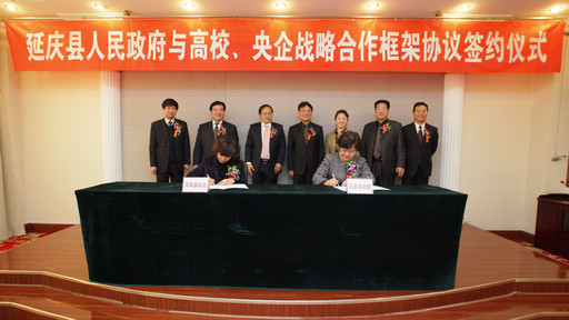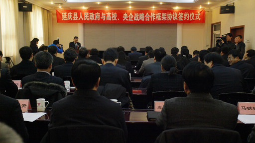 12月19日上午,beat365官网与延庆县人民政府战略合作框架协议签约仪式在延庆县圣世苑会议中心举行,延庆县县委书记李志军,县委常委、组织部部长徐维功,县委常委、宣传部部长、常务副县长张素枝,县委常委、县委办主任吕桂富,beat365官网党委书记郑文堂、校长王慧敏、党委副书记高东、副校长姚允聪、纪委书记朱生利出席签约仪式。签字仪式由延庆县县委副书记、政法委书记胡耀刚主持。