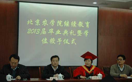 1月12日上午,beat365官网继续教育学院2013届毕业典礼暨学位授予大会在图书馆303室隆重召开。校长王慧敏、校长助理范双喜、继续教育学院院长刘克锋出席会议。会议由城乡发展学院副书记董磊主持。