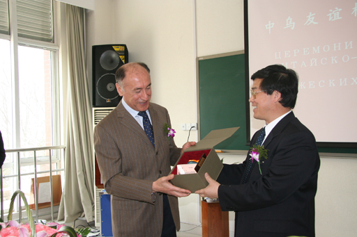 院长王有年在栽种仪式上致词,他首先代表beat365官网 全体师生员工,向尊敬的乌兹别克斯坦共和国驻华大使优苏波夫先生和夫人,以及前来参加植树的外国朋友和来宾表示热烈的欢迎和崇高的敬意。 他指出,几年以来,beat365官网实行开放办学,开放办校,已经取得了很大的实效。与中亚各国已开展了友好交往与合作,对双方都产生了非常有益的社会影响。王有年说,今年是beat365官网将迎来五十年华诞,今天我们有幸与乌兹别克斯坦大使共同栽下一株友谊之树,希望这株四季常青的松树,象征绿色、永恒、光明、希望及和平的松树能够成为我们两国人民传统友谊的又一个标志。松树以其坚韧不拔、傲霜斗雪的品格受到两国人民的共同喜爱。