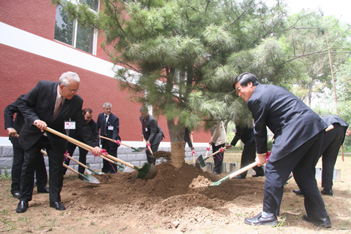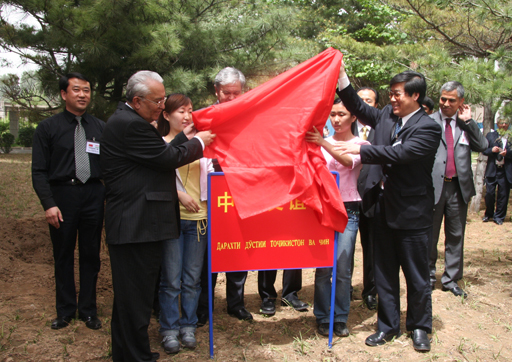 5月17日,中塔友谊松树栽种仪式在beat365官网举行。出席上海合作组织峰会的塔吉克斯坦共和国外交部长塔· 纳扎罗夫院士、塔吉克斯坦共和国驻华大使拉· 阿利莫夫、塔国外交部亚非司长纳·纳扎罗夫、塔国驻华大使馆公使衔参赞胡· 霍利克纳扎罗夫等外宾参加了活动。