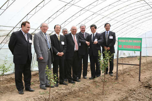 中外来宾一起前往农学实验基地,参观考察了“中塔友谊杏树林”。