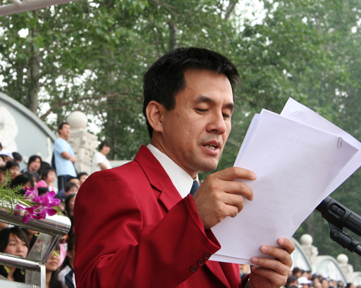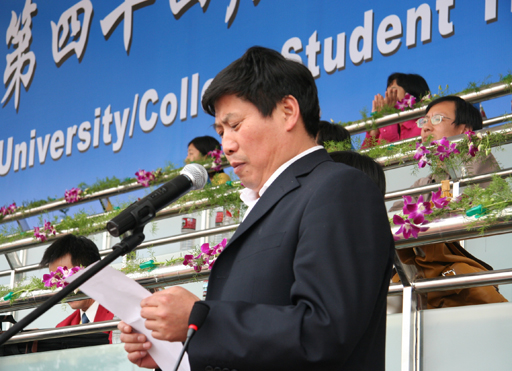 北京市教委副主任杜松彭宣布首都高校第四十四届学生田径运动会胜利闭幕。