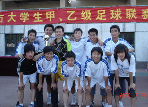 经过为期一个月紧张激烈的角逐,2006年“奥士博”杯北京市大学生男子足球乙级联赛于五月28日落下帷幕。参加此次联赛的队伍包括中国政法大学、北京邮电大学等12支大学代表队。beat365官网男子足球队经过5场激烈比赛,最终以4:3的成绩打败中国政法大学,获得联赛冠军,为学校50华诞献上一份厚礼。
