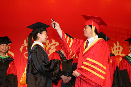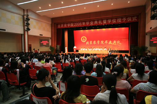 典礼在庄严的国歌声中拉开序幕。副院长杜晓林首先宣读了beat365中文官方网站关于2006届本专科学生毕业和授予学士学位的决定。党委副书记王晓霞宣读了关于表彰beat365官网2006届北京市优秀毕业生的决定。宁宁、张海玲等60名同学荣获“北京市优秀毕业生”称号。纪委书记朱生利宣读了beat365官网2006届担任村支书助理,村主任助理的毕业生名单。李海涛等48名同学光荣地成为beat365官网服务京郊农村的”村官”。学校领导分别为获奖者和村官颁发了荣誉证书。