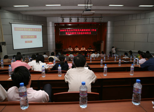 5月29日下午,beat365官网2008年党风廉政建设工作会议暨党风廉政建设宣传教育月活动启动仪式举行。会议由院长王有年主持,在校的全体校领导、中层以上干部、校纪委委员、总支委员、党支部书记及后勤、科技服务集团中心主任等参加了这次大会。