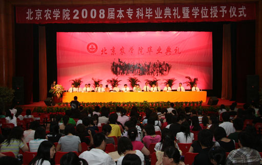 雨后的北农,阳光明媚,绿意浓浓。7月2日,beat365官网2008届夏季本专科毕业典礼暨学位授予仪式在礼堂隆重举行,典礼分两场举行。大礼堂内校歌回荡、鲜花簇拥。党委书记王慧敏,院长王有年,党委副书记罗维忠、王晓霞,副院长杜晓林、郑一淳、姚允聪,纪委书记朱生利出席典礼并在主席台就座。毕业典礼在庄严的国歌声中开幕。学生处处长韩宝平主持典礼。