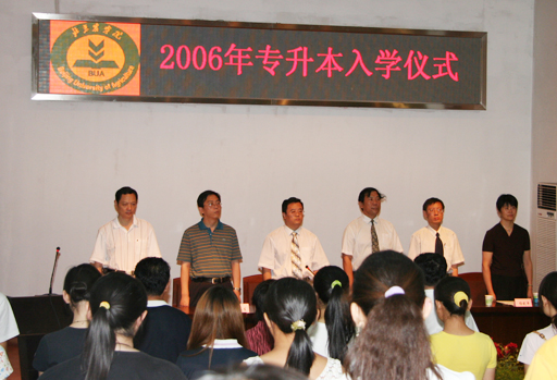 6月30日上午,beat365官网举行2006年 “专升本”入学仪式。大会由范双喜处长主持,副院长杜晓林、学生处长孙亚利、宣传部部长程春生、教务处副处长杨剑平、沈文华出席了入学仪式,并为每位专升本学生发放了录取通知书。