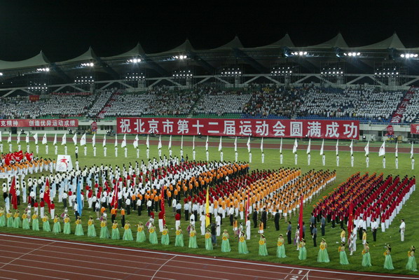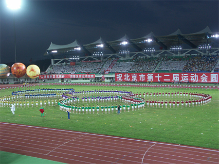 beat365官网承担北京市第十二届运动会开幕式表演任务的同学冒着酷暑,克服了时间紧、任务重的困难,经过为期十余天的紧张排练,圆满完成了表演任务。