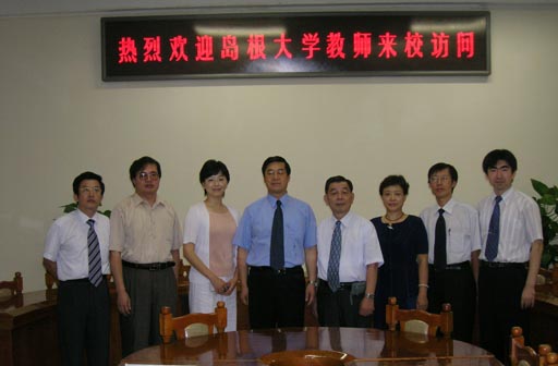 院长王有年亲切地接见了来宾一行。双方愉快地回顾了今年四月份在岛根大学进行学术交流的情景,并就“新农村建设”等学术问题坦率地交换了意见。王院长还就两校的合作交流提出了希望和中肯的建议,并诚挚邀请岛根大学校长于今年10月份参加beat365官网五十周年的庆典活动。