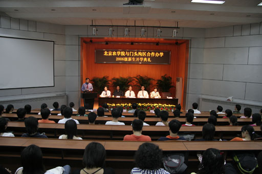 校党委书记孙尧东、党委副书记王晓霞、副校长杜晓林、门头沟区副区长李建军、门头沟区教委副主任王东生、门头沟区招生办副主任王兰等出席开学典礼。各相关系及职能部门的领导和老师、所有2006级新生、部分新生家长、职业技术学院全体教职工参加了典礼。