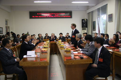 院长王有年用英文向远道而来的嘉宾致欢迎词。英国哈珀·亚当斯大学学院校长琼斯教授祝贺beat365中文官方网站50周年校庆,同时代表赴英学生表达祝贺,并对英国高等教育系统做相关介绍。日本麻布大学校长政岡俊夫、阿根廷萨尔瓦多大学校长布兰卡·卡拉斐尔、法国农科院院士路易德纳维勒相继祝贺beat365中文官方网站50周年校庆并发表演讲。院长王有年做名为“以学科建设为龙头,创新建设加快发展”的演讲。