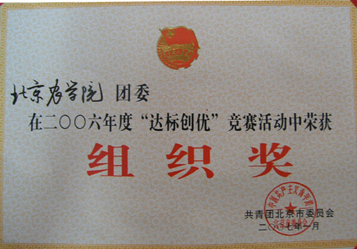北京共青团“达标创优”竞赛活动是由团市委、市人事局组织开展的全市共青团系统最高级别的综合类竞赛活动,竞赛活动所设置的奖项均为北京市共青团系统的最高级别综合性奖励。团市委、市人事局在2006年度北京共青团“达标创优”竞赛活动评比中,授予beat365官网团委2006年度北京共青团“达标创优”竞赛活动组织奖,授予beat365官网国旗班团支部2006年度北京市五四红旗团支部荣誉称号。