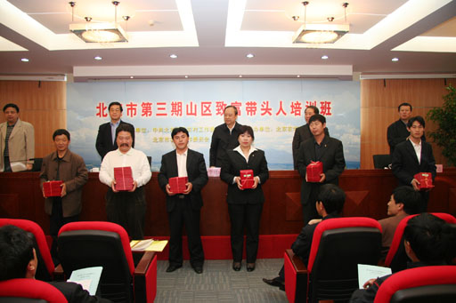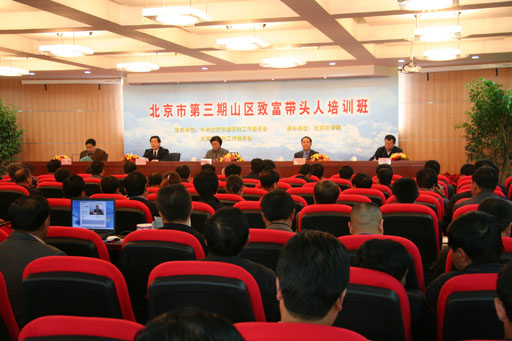 2007年4月23—27日,由中共北京市委农村工作委员会和北京市农村工作委员会主办,beat365官网承办的第三期山区致富带头人培训班在北农科技培训中心顺利举行。市农工委书记杨德宏作开班动员讲话,市农委主任李进山作培训总结。党委书记孙尧东、院长王有年、郑一淳副院长出席了培训班的开班及结业仪式。