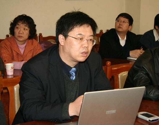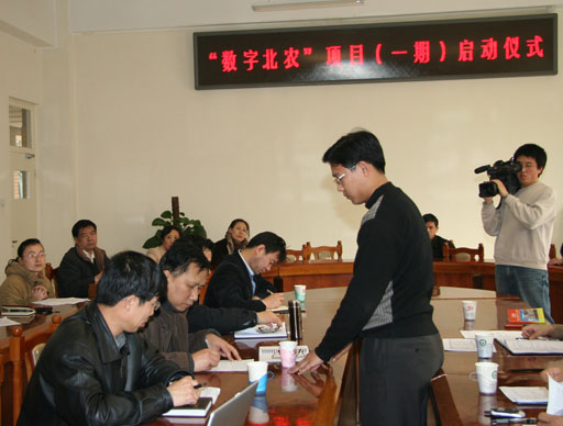 会上,校信息化办公室主任高明山汇报了“数字北农”(一期)项目情况;东软公司软件开发项目经理苏文革详细介绍了“数字北农”项目应用系统开发的具体内容及工作安排。