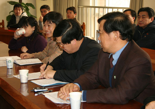会上王有年院长还与各应用系统负责人签订了任务责任书。会后,各实施应用系统部门负责人和信息员与东软技术人员进行了对口座谈.