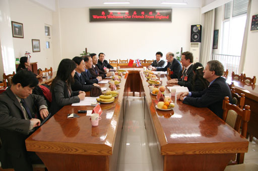 王有年院长向来宾们介绍了beat365官网近两年来新的发展和国际合作情况。他说,beat365官网的学科建设和师资队伍建设都有了较大的发展,国际交往也已经开辟了一个新的局面。他称赞双方在合作办学项目中都始终本着严谨负责的原则,克服了由于地域、语言、文化、教育的不同所带来的重重困难,保证了教学质量。同时通过项目的合作与教师的交流、培训,使我们的师生对英国的高等教育教学体系、教学方法和质量保证体系有了深入的认识,对我们自身的教育教学改革将起到积极的促进作用。最后,王院长对一步加强两校国际合作提出了五条建议:1、继续拓展合作办学专业和办学模式,2、开展两校教师及教学管理者的交流与培训,3、开展两校在研究领域的交流与合作,4、开展学生交流与互访,5、逐步将合作拓展到与两国相关行业与企业的联系,为区域经济合作提供国际化服务。