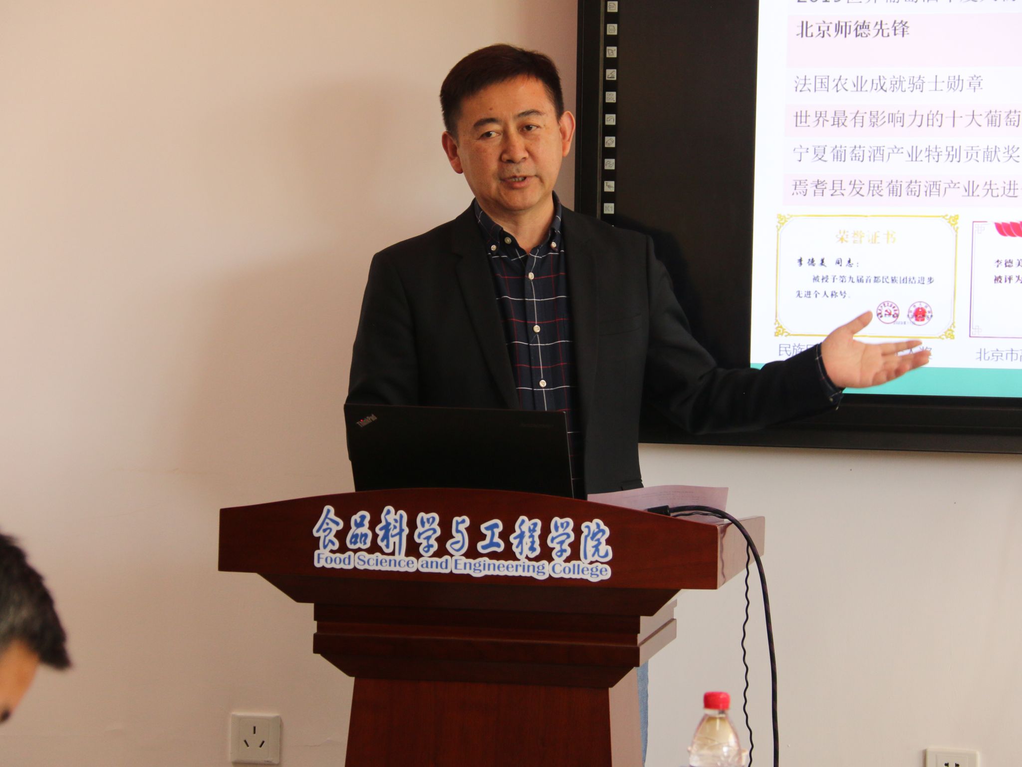 “北京市师德先锋”荣誉称号获得者、食品学院酿酒工程系主任李德美教授作“扎根首都农林教育 做产业和文化的传承者和创新者”主题发言。他从以德立身、教书育人、助力行业发展等方面讲述了在教育教学和管理服务工作中的育人故事和心路历程,分享了对立德树人的理解感悟,生动诠释了师德师风的深刻内涵。