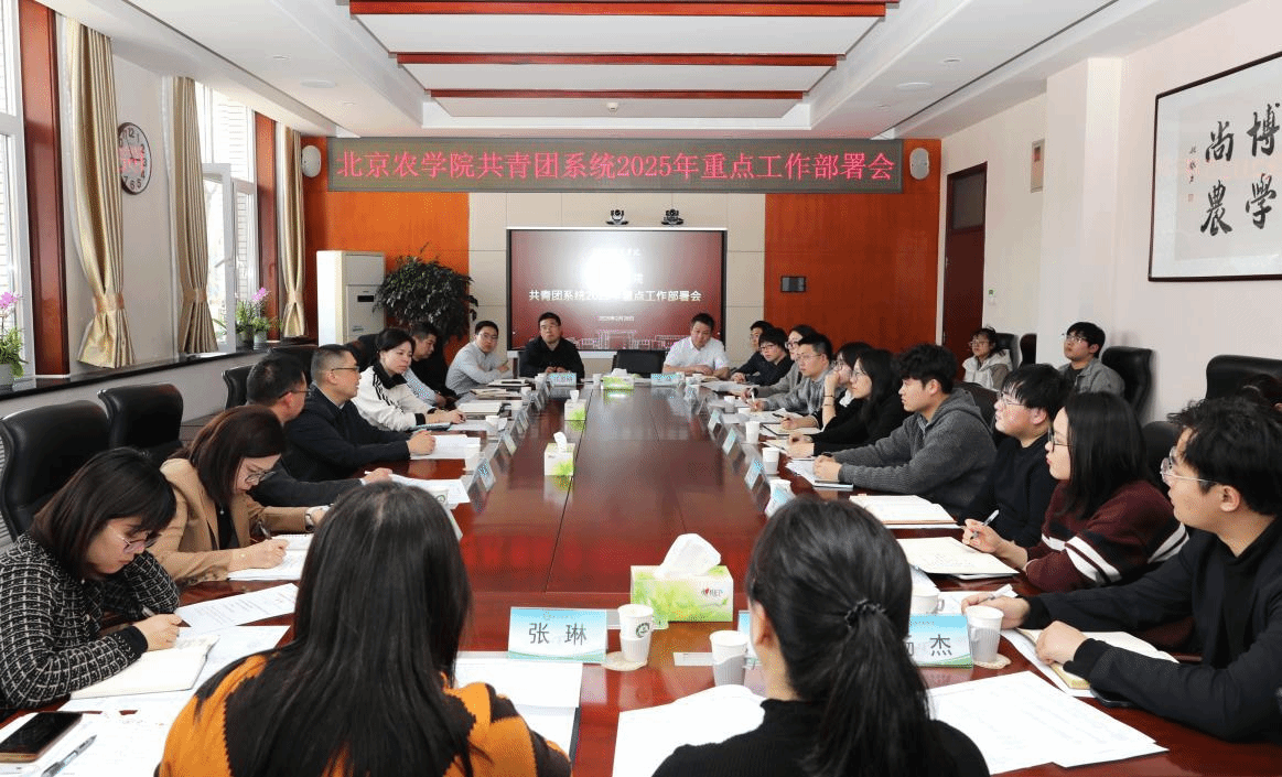 郑品石从问题导向分析了新时代大学生的特点,提出beat365官网共青团系统的重点和难点工作。他指出,2025年,学校共青团系统要围绕学校“落实教育强国建设纲要,推动学校事业高质量发展”主题主线,以“实干创先年”为抓手,通过开展丰富多彩的校园文化活动,发挥好共青团思想政治引领主力军作用,履行好引领凝聚青年、组织动员青年、联系服务青年基本职责,探索打造团学工作“红”的底色和专业教育“绿”的特色深度融合的创新性人才培养模式。郑品石强调,共青团系统要擦亮“青春”底色,引导广大北农青年坚定不移听党话、跟党走,积极投身科研创新、志愿服务、社会实践等活动,用青春诠释责任担当,以奋斗实现伟大梦想,努力成长为能够担当民族复兴大任的时代新人,奋力书写为中国式现代化挺膺担当的青春篇章。