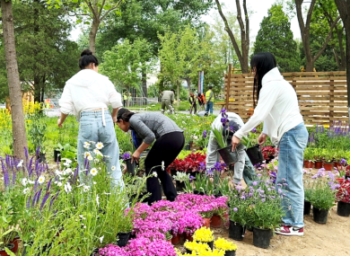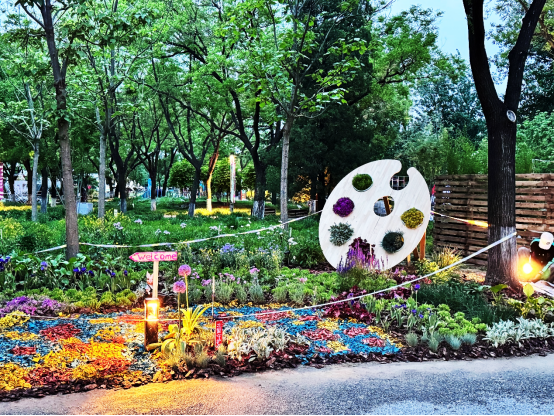 绿意盎然,大地欢歌。4月30日,首都绿化委员会办公室、北京市委社会工作部、北京广播电视台、东城区人民政府共同举办第五届首都市民花园节在龙潭中湖主会场开幕,推动北京花园城市全民共建、共治、共享,让老百姓走进自己亲手打造的专属花园!本届花园节以“你好!花园城市”为主题,邀请广大市民共享绿意盎然之美。由园林学院李金苹、冯丽两位老师带队的两组作品“永续绿荫”“夏日调色盘”成功入围。师生于近日如火如荼地投入花园筹备与建设工作。他们冒雨前行,脸上虽显疲惫,却仍坚定不移,分秒必争,尽全力布置美丽花园。