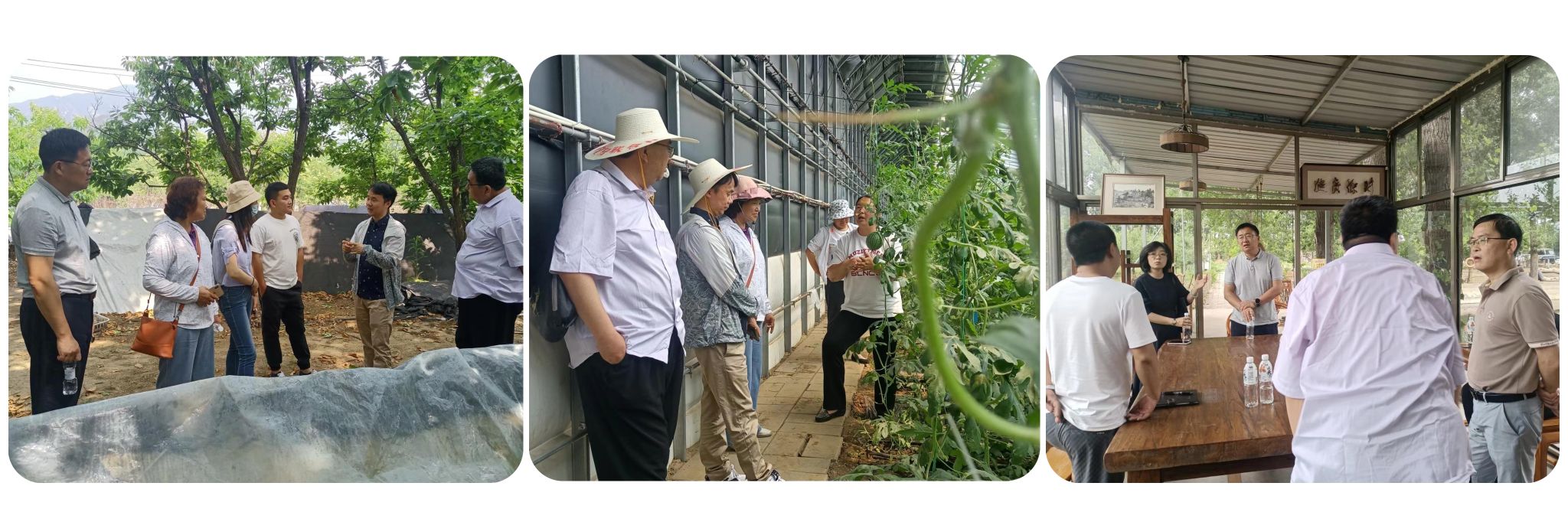 “头雁”导师张国庆教授在北京海疆栗蘑产销专业合作社查看栗蘑生长情况,对栗蘑种植技术进行一对一现场指导;张秋芝教授在北京金惠农农业专业合作社查看西瓜、玉米等种植情况,了解不同生长期的田间管理,进行详细的指导;孙曦教授考察北京崔村山霞种养殖基地,围绕基地的运行情况和研学提出针对性建议。