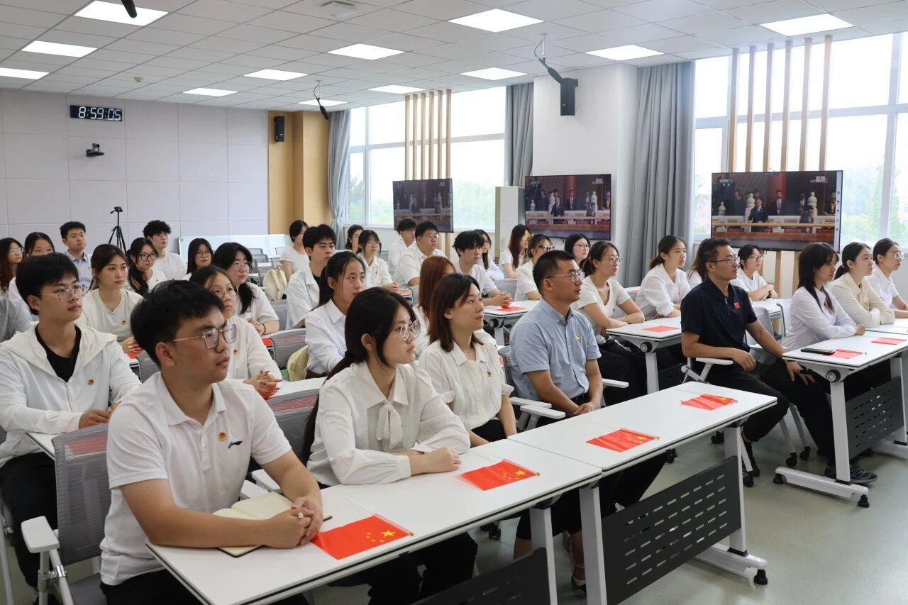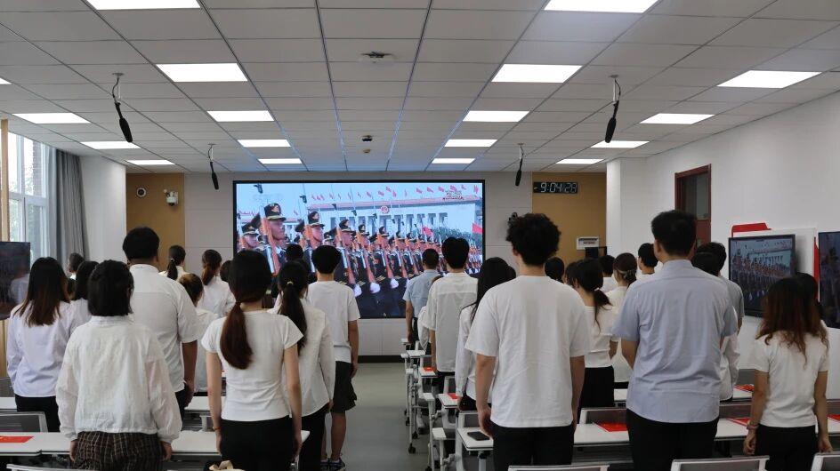 纪念中国人民抗日战争暨世界反法西斯战争胜利80周年大会于2025年9月3日上午隆重举行。大会期间,beat365中文官方网站校团委、校学生会、校研会、校科协与校青协学生骨干齐聚教学楼B座510室,心怀崇敬,一同观看盛世阅兵。