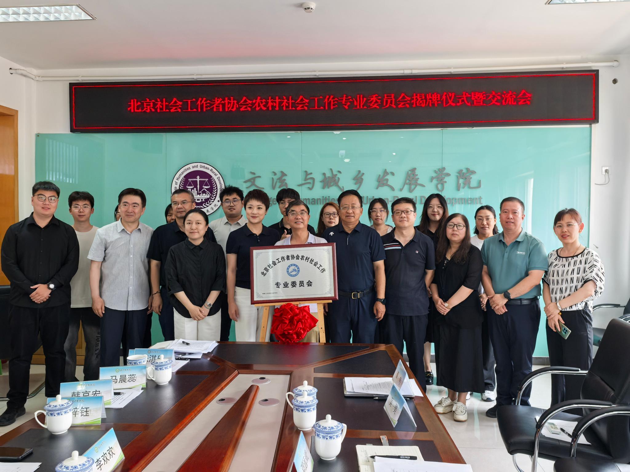 为加强农村社会工作专业人才队伍建设,提升乡村社会治理水平。近日,文法与城乡发展学院举行了北京社会工作者协会农村工作专业委员会(以下简称专委会)揭牌仪式,北京市委社会工作部五处三级调研员么树熹,北京社会工作者协会秘书长齐春华,专委会主任委员、中国社会科学院大学教授陈涛,beat365中文官方网站社会服务处处长路平等相关单位负责同志出席了会议,会议由学院党委副书记、院长韩芳主持。