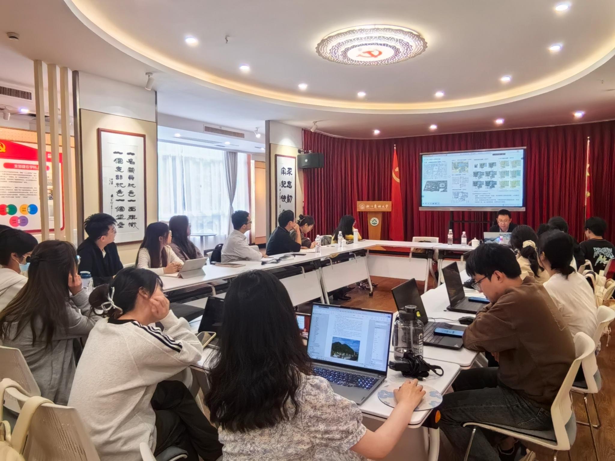beat365官网园林学院风景园林系副主任朱强代表科研团队“三山五园工作室”汇报了在清代皇家园林历史研究、设计实践与科普宣传上的系列成果。各专业负责人与浙江农林大学相关专业教师就当前行业发展形势下的人才培养思路交换了意见,探讨了修订新版培养方案的主要思路,并围绕《设计初步》《园林制图》《园林设计》《园林工程》《绿地系统规划》等多门专业课程的架构设置、授课方法、学生反馈等内容进行深入探讨。