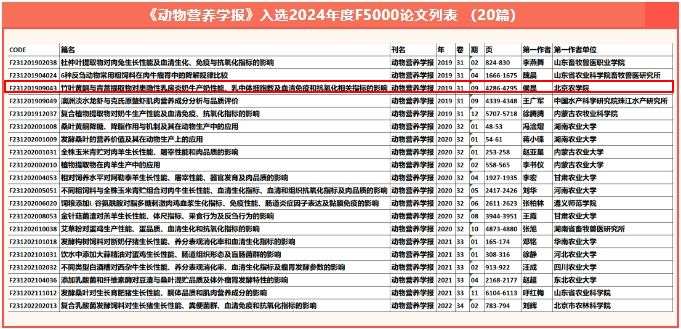 据悉,《动物营养学报》作为国内动物营养学领域的权威期刊,与国际知名期刊Animal Nutrition一同被认定为中国“百杰期刊”和“中国科技核心期刊”,代表着该领域的国内最高学术水平,本次《动物营养学报》共有20篇论文入选2024年度F5000论文。侯坤的论文通过深入探索竹叶黄酮与青蒿提取物对患隐性乳房炎奶牛的多项生理指标的影响,为奶牛健康管理提供了新的思路和方法,对于提升奶牛产奶性能、降低乳中体细胞数及增强奶牛免疫和抗氧化能力具有重要意义。