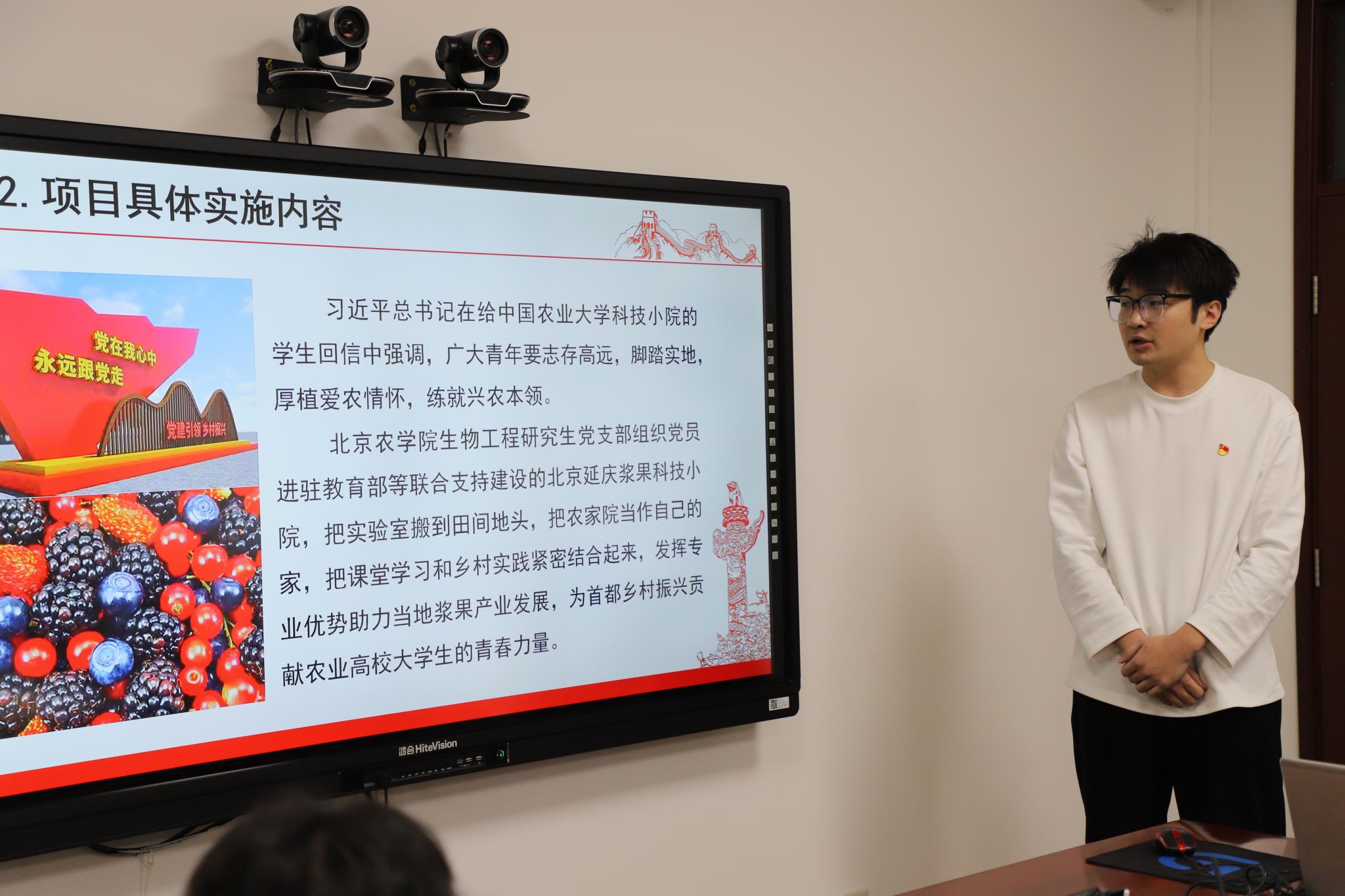 红色“1+1”活动自2024年5月启动以来,各党支部紧跟时政热点、结合专业特点,深入乡村基层、社区企业一线,积极开展乡村振兴、基层治理、理论宣讲、扶残助老、科技推广、文化普及等多种形式的共建活动。本次评审共有31个学生党支部入围,入围支部分别围绕开展红色“1+1”共建活动的背景及意义、活动特色做法、活动成效等内容进行了答辩,展现了新时代北农学子的良好精神风貌和青年使命担当。