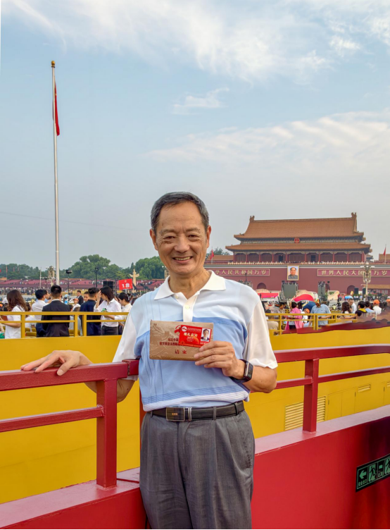 离退休第九党支部的段平老师说:“起来!不愿做奴隶的人们!把我们的血肉,筑成我们新的长城……”当激昂的《义勇军进行曲》在天安门广场上空响起,当鲜艳的五星红旗在微风中高高飘扬,我的心被深深地震撼了。阅兵式上,徒步方队迈着整齐划一的步伐,喊着铿锵有力的口号,正步通过天安门广场。他们身姿挺拔、眼神坚定,每一步都踏出了中国军人的威严与自信,每一声口号都喊出了保家卫国的决心与豪情。那整齐的队列、刚劲的动作,仿佛是一座钢铁长城,坚不可摧。这让我深刻地感受到,“没有共产党,就没有新中国”正是在党的领导下,这些英勇无畏的人民子弟兵,舍生忘死、保家卫国,我们才能拥有现在和平稳定的生活环境。他们是国家的守护者,是民族的脊梁。