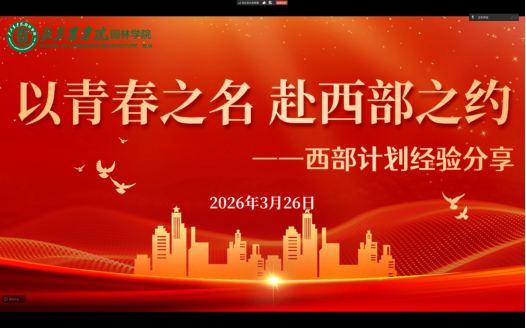 为帮助同学们深入了解西部计划,近日,园林学院开展2026年西部计划经验分享线上活动。活动邀请两位扎根西部的2025届优秀毕业生分享志愿经历,学校西部计划负责人贾博文老师专业解读政策,为全院学子带来干货满满的宣讲。