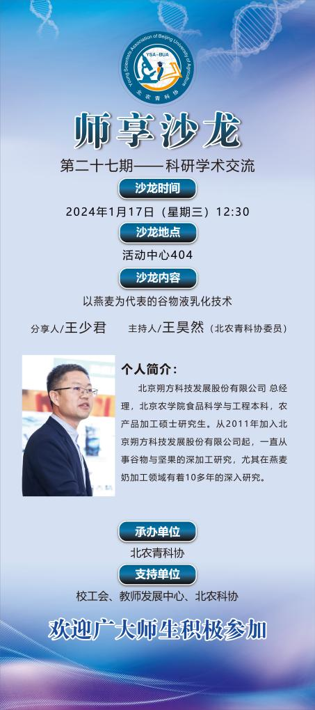 沙龙主题:以燕麦为代表的谷物液乳化技术