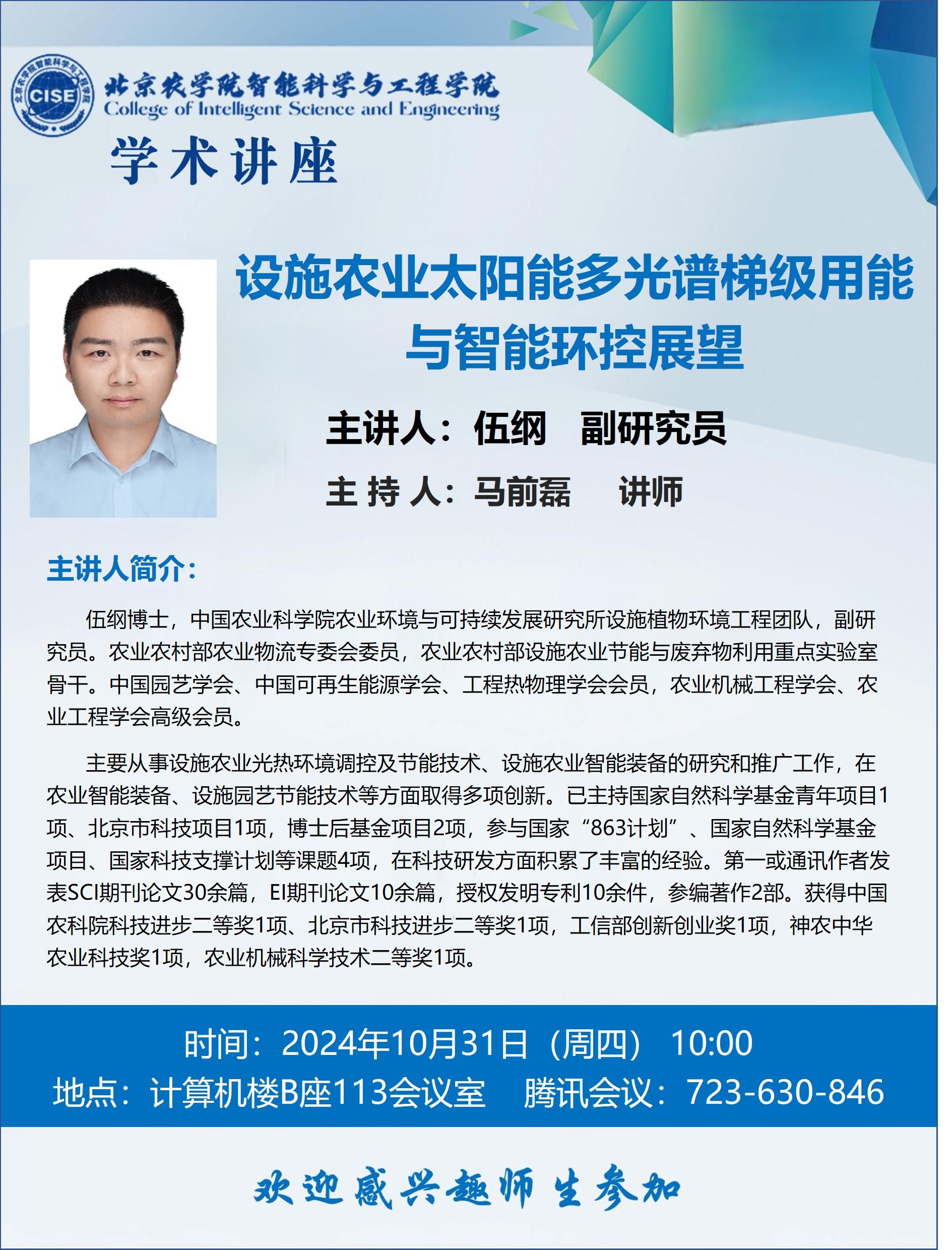 讲座预告 |都市现代农林进展2024年秋季学期第四讲
