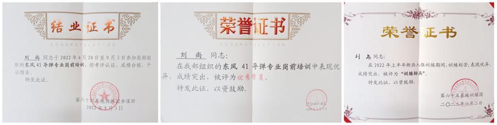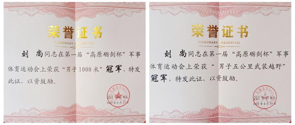 2022年,刘尚响应国家号召参军入伍,凭借过人的体能素质,他在新兵连考核中刷新了男子新兵3000米纪录。在青海西宁第一届高原砺剑杯军体运动会中,他更是横扫对手勇夺男子400米、1000米及武装五公里三项冠军。同时,其业务学习总成绩名列前茅,荣膺“优秀学兵”及“优秀导弹操作手”称号。他还在整个旅体能考核比武中刷新3000米纪录。