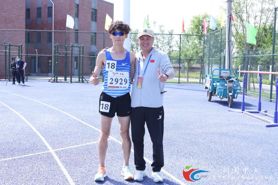 训练时,逯老师风雨无阻地守候在跑道旁,精准记录每一组数据,敏锐观察刘尚的跑姿与身体反馈,及时微调计划。他深知,对于这位历经伤痛重创的运动员,耐心与科学比激进更能抵达远方。在逯老师精心构筑的训练“阶梯”中,刘尚的成绩一步步提升,他的自信心也在不断复苏。“逯老师的关怀鼓励和科学的指导,如暖阳般驱散我心中阴霾。真的感谢逯老师,让我重新找回了信心和力量。”