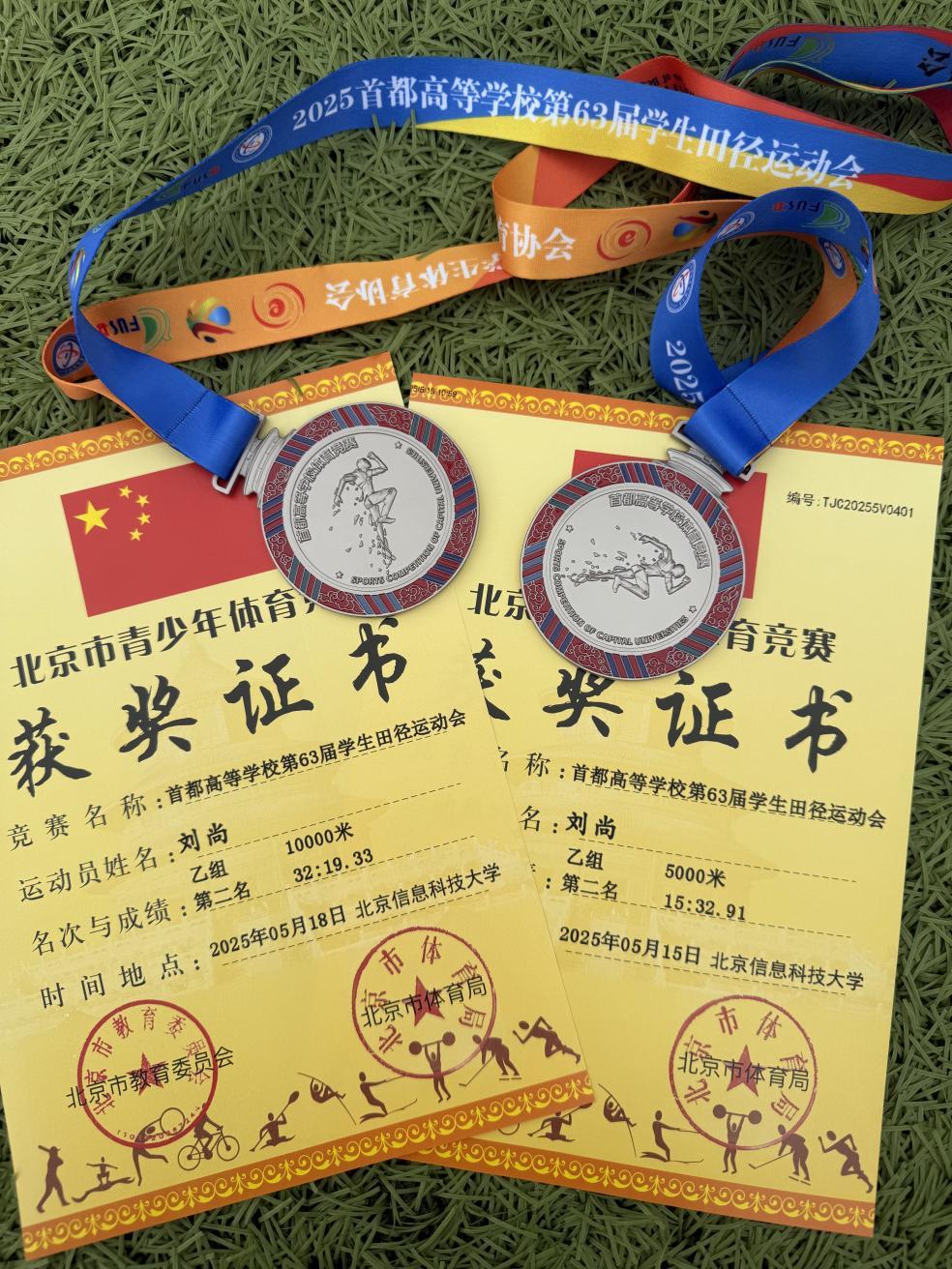 苦心人,天不负。在今年学校运动会上,伤愈复出的刘尚迎来了首场正式比赛。赛场上,他全力拼搏,一鸣惊人,同时打破了学校保持了5年的男子3000米纪录与15年的5000米纪录。这份成绩为他注入了征战更大赛场的信心。在之后举办的第63届首都高校田径运动会上,刘尚又在男子乙组长跑项目中取得两项亚军的优异成绩。“当我奋力冲过万米终点线的那一刻,多年的遗憾终于如潮水般退去。”