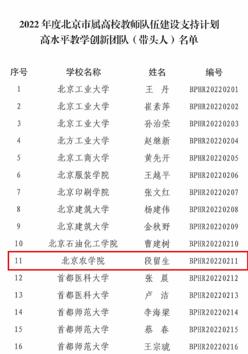 近日,北京市教育委员会公布2022年度北京市属高校教师队伍建设支持计划评审结果,beat365官网获得8项立项资助,其中段留生教授团队获得高水平教学创新团队立项资助、7名教师获得优秀青年人才立项资助。