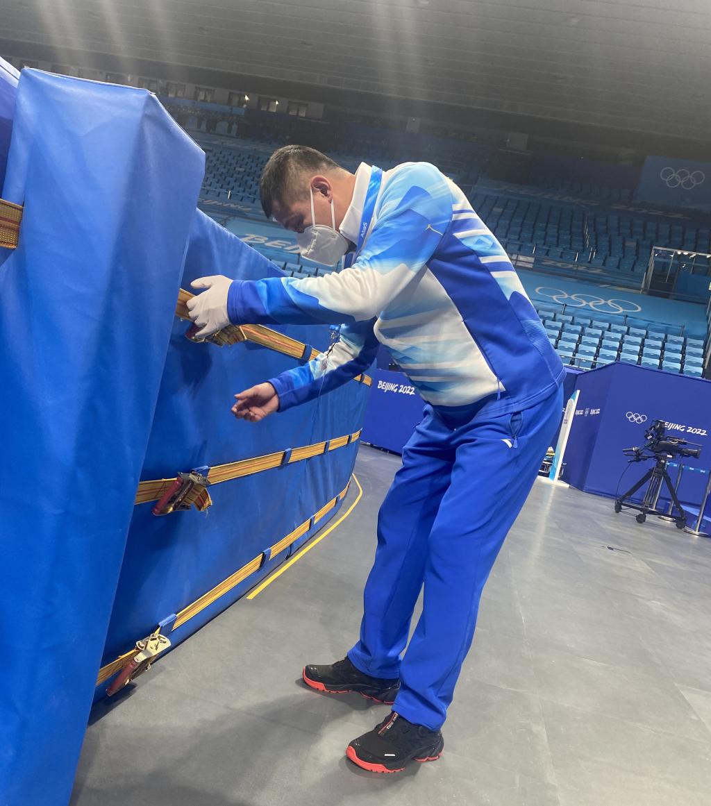 逯合江是短道速滑、速度滑冰国家一级裁判,多次参加国家级、北京市级滑冰比赛执裁工作,曾担任2021年“相约北京”测试赛短道速滑裁判。他此次担任北京冬奥会首都体育馆短道速滑防护垫检查员,主要工作就是和团队同事一起,随时检查防护垫,守护短道速滑运动员的安全。